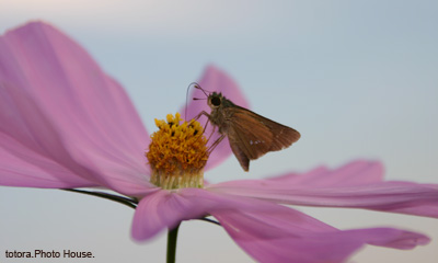 「コスモスと蛾?」