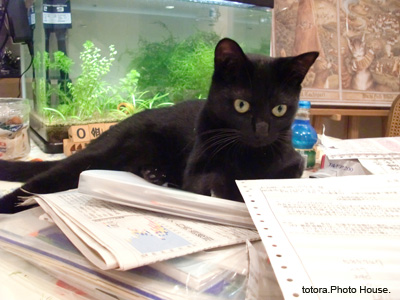 「机の上を散らかすニャンコ」 人がいないと物陰でひっそりと寝てるのに …。 なぜにわざわざモノが乗ってる机の上で転がるかなー…。 とりあえず細かいコトは気にしてたら始まらないので。