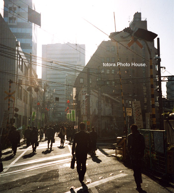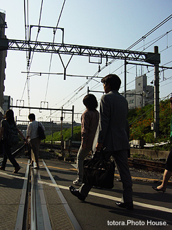「朝の通勤風景 -踏み切りにて-」