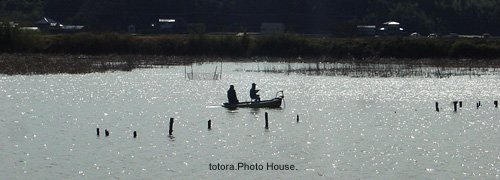 「船で釣りする人」