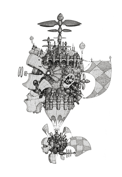 「顔の船の街」:右